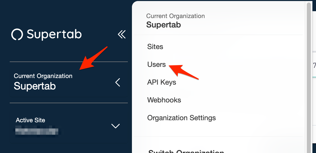 - Select your organization name, then select "Users"