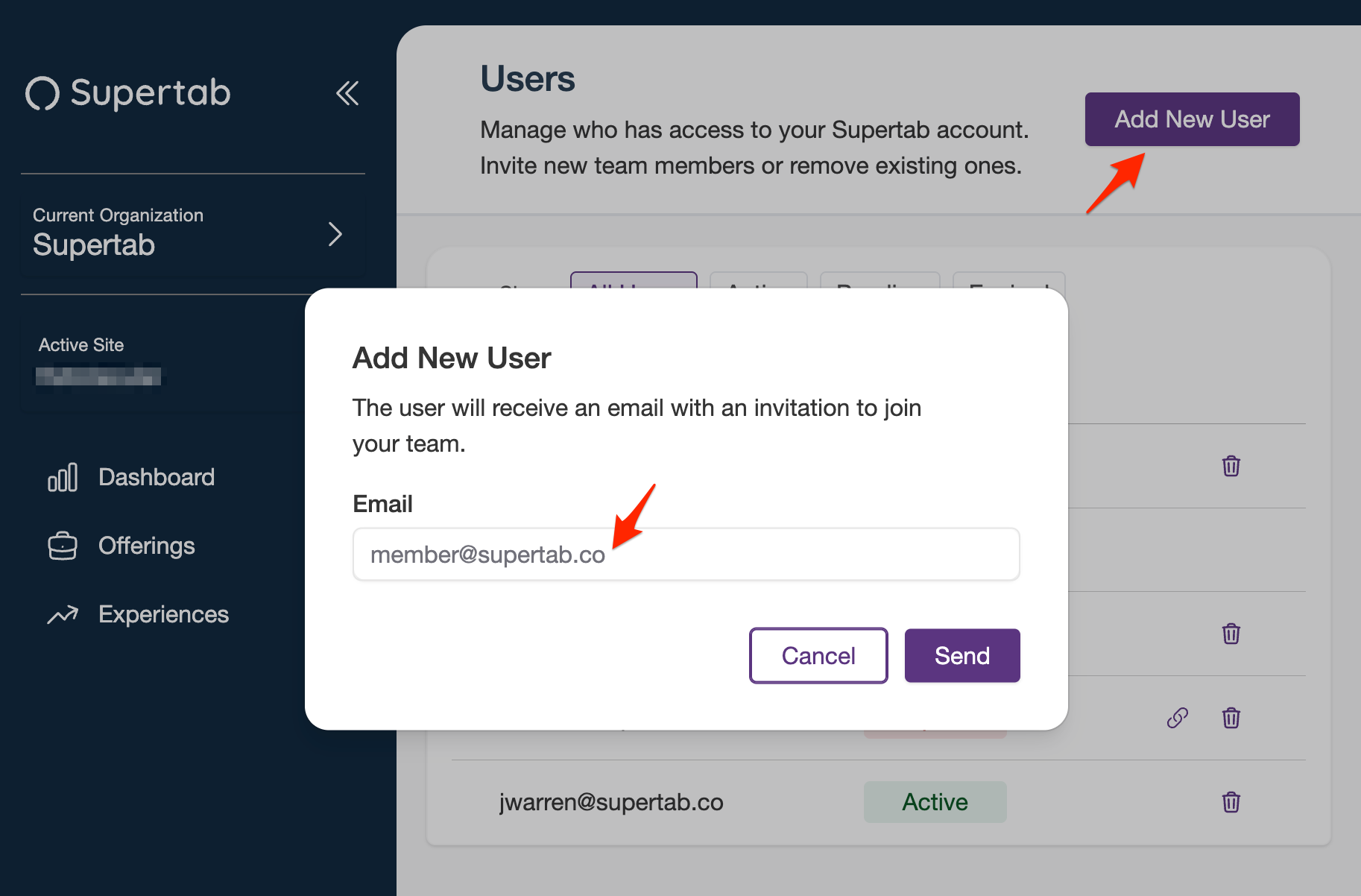 - Select "Add New User" and input your teammates email address.