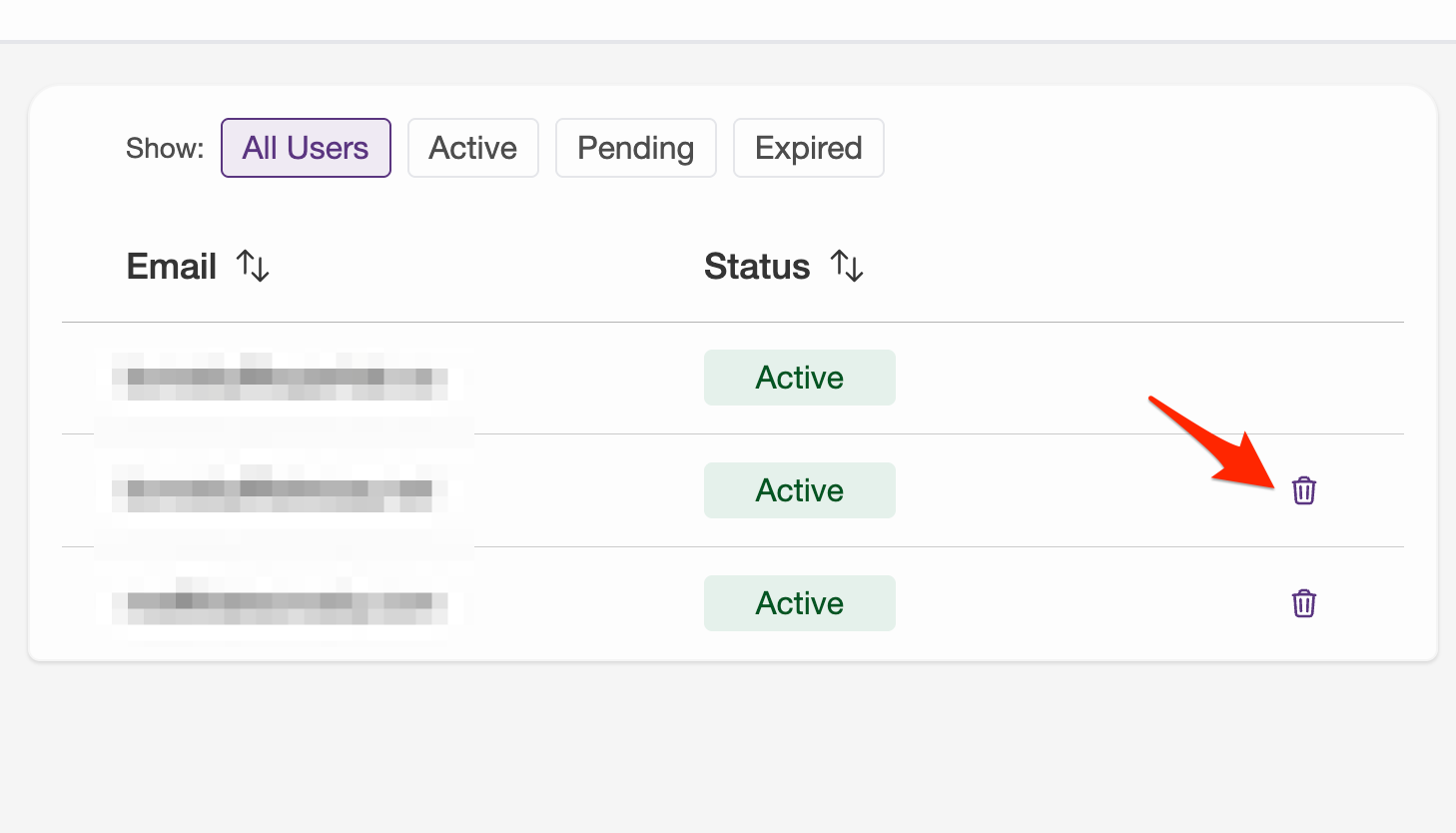 - Click on the trash bin icon next to the user you want to remove.