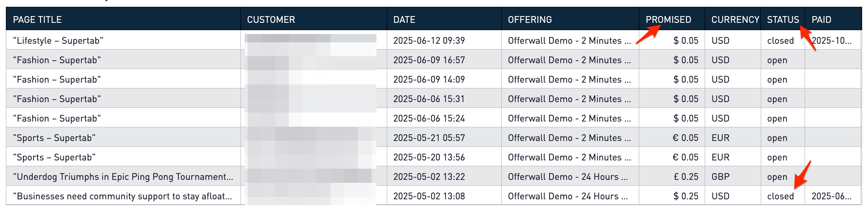 Each open tab has a maximum lifetime of 30 days. This means that even if your tab hasn’t yet reached its dollar threshold, Supertab will automatically close it once it’s 30 days old. As long as the total is $1 USD or more and we already have your payment method on file.