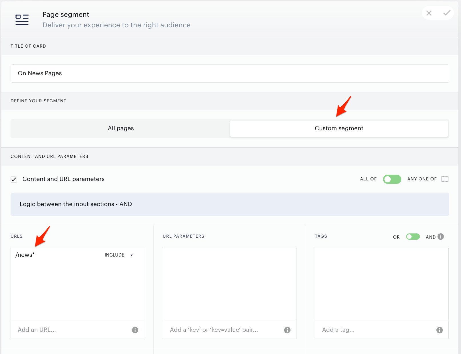 Create or edit an existing Experience in Composer for pages you want to display the Supertab paywall on. In this example, we will want to charge for content located at /news