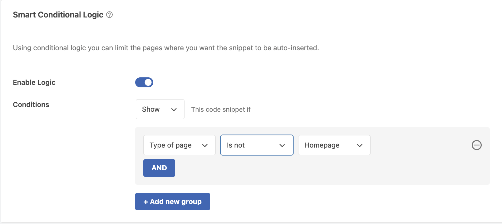 - Scroll down to Smart Conditional Logic and add a rule where the paywall will not appear on your homepage.